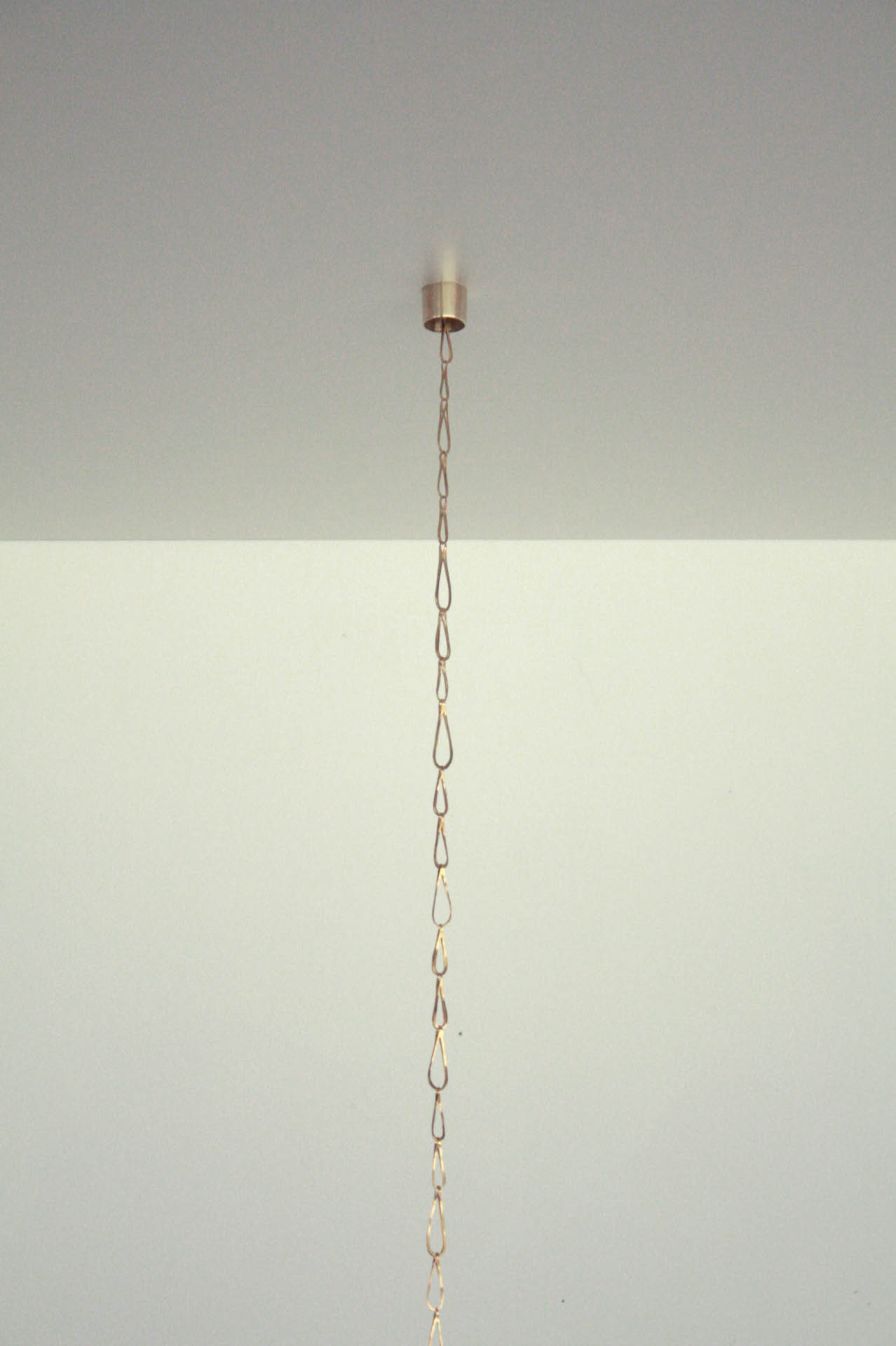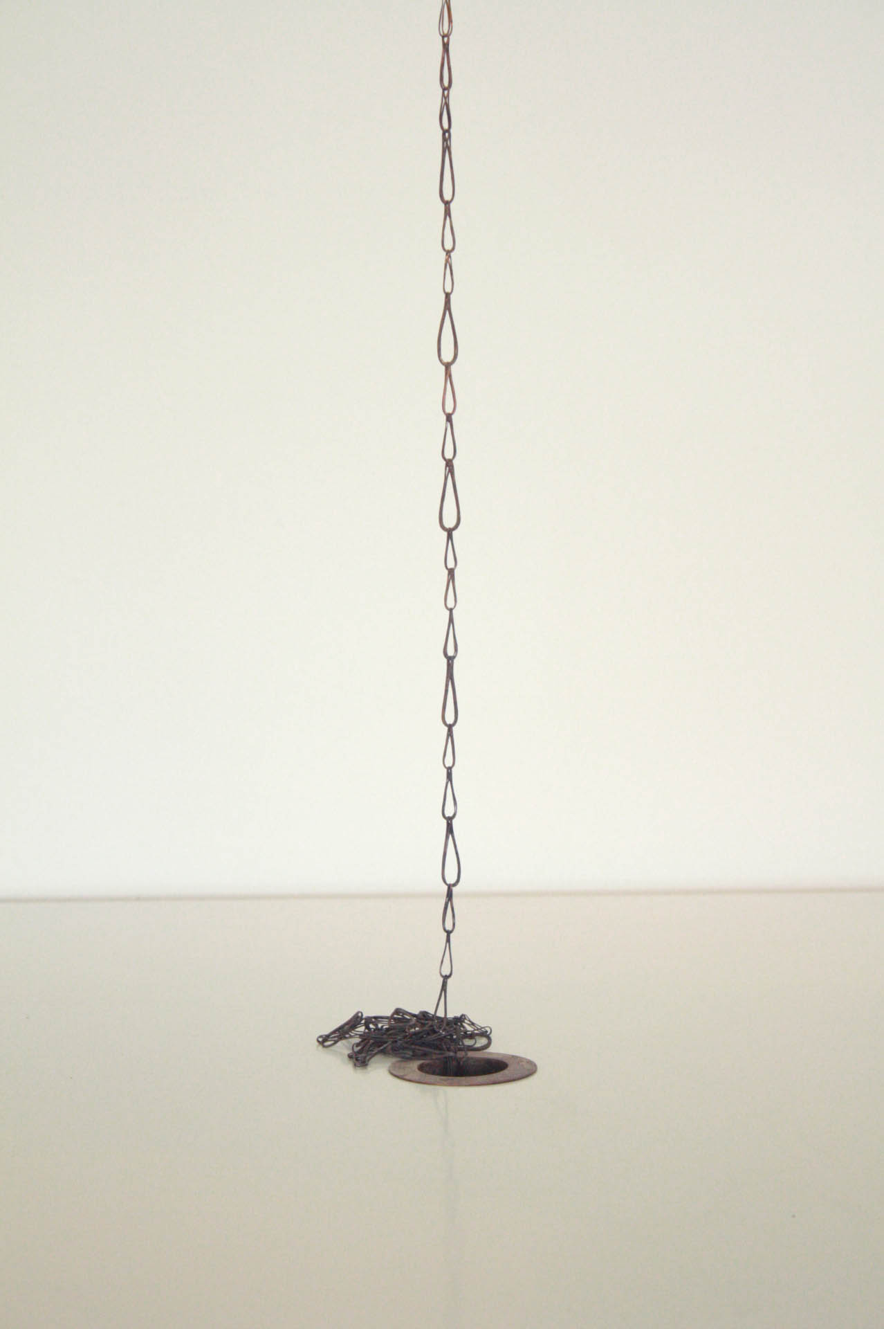 The vertical position of the chain symbolizes flow which involves the tear-like shaped elements, which indicates the presence of negative emotions but also the flow direction and ultimateness of life experiences, their indelibility from memory. Visual aspect of the work is supplemented by record of water flowing in shower, which refers to the intimacy of the mind and the integrity of the inner world and uncompromisingly running time as well.